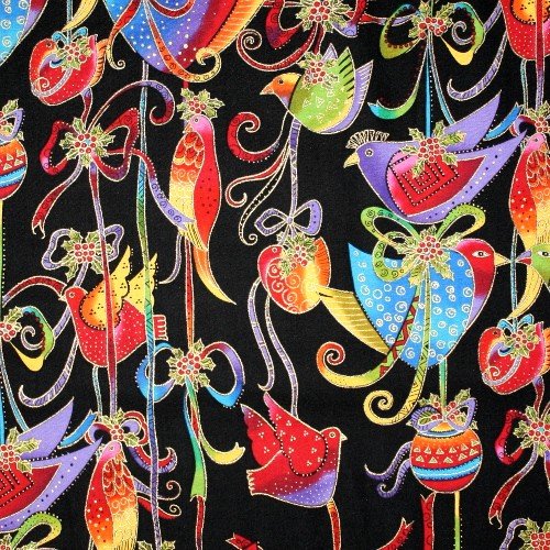 .../ Clothworks Laurel Burch 'Holiday Celebrations' Christmas Bird Ornaments on Black Cotton Fabric By the Yard / Quilts Cotton